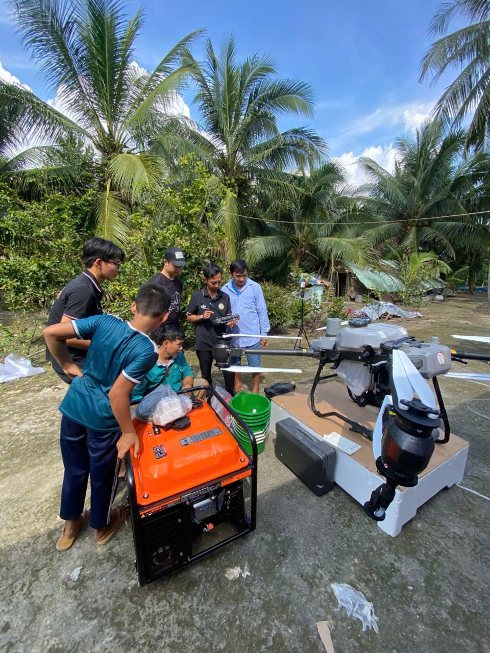 Kỹ thuật viên hướng dẫn kiểm tra lần cuối (kết nối điều khiển, thử khởi động, test chức năng bay/phun).